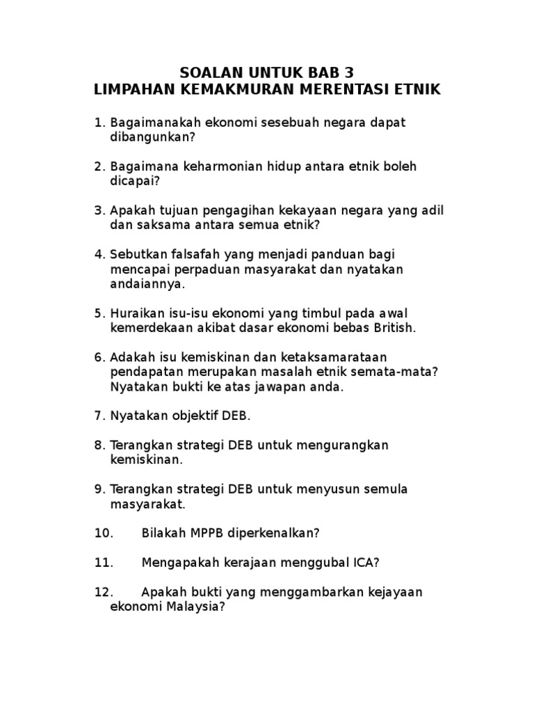 Soalan Untuk Bab 3 Hubungan Etnik