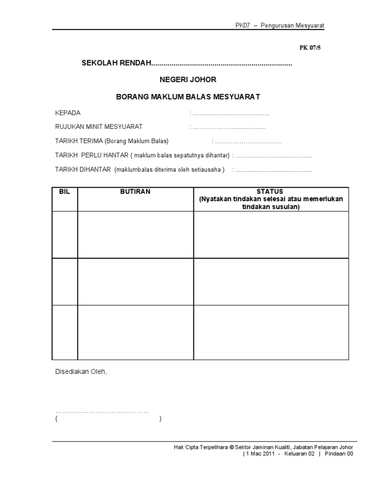 Borang Pk 07 5 Maklum Balas Minit Mesyuarat Kali Pertama 2017