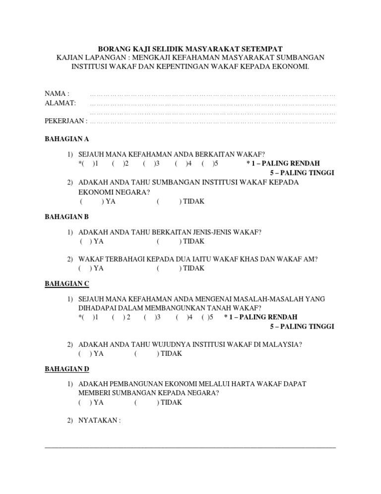 Borang Kaji Selidik Masyarakat Setempat Wakaf