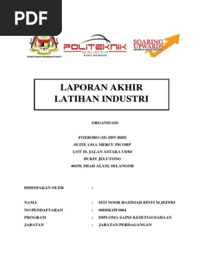 Buku laporan ini dikemukakan kepada jabatan perdagangan sebagai sebahagian daripada syarat dianugerahkan diploma sains kesetiausahaan. Laporan latihan industri oleh nurdalila binti mohd dalif di putrajaya enterprise lot 4157 bukit beruang melaka tengah melaka buku laporan ini dikemukakan kepada jabatan perdagangan sebagai memenuhi sebahagian dari syarat penganugerahan diploma pengurusan peruncitan politeknik premier ungku omar jun 2013 i. Ulu kelang ftz kuala lumpur. Justeru itu laporan latihan industri ini adalah sebagai bantuan temuduga diantara pelajar dengan pensyarah.