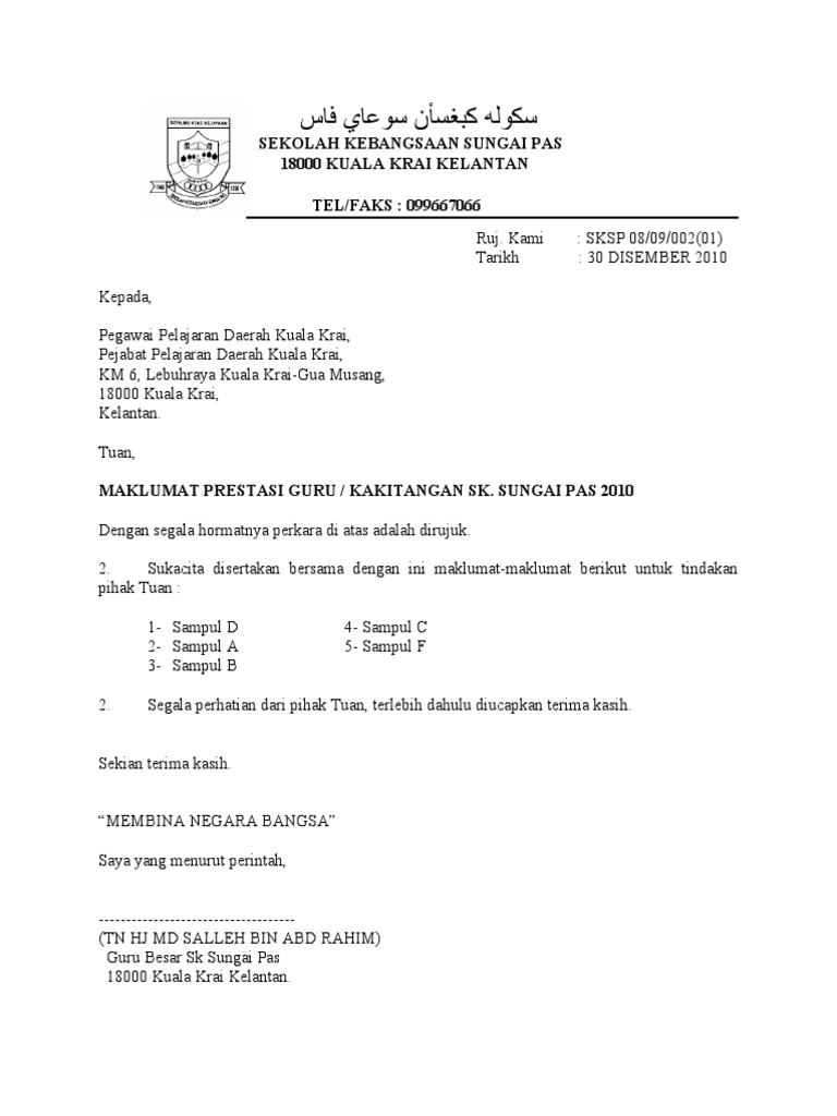 Contoh Surat Rasmi Kepada Jabatan Imigresen Surat Rasmi H