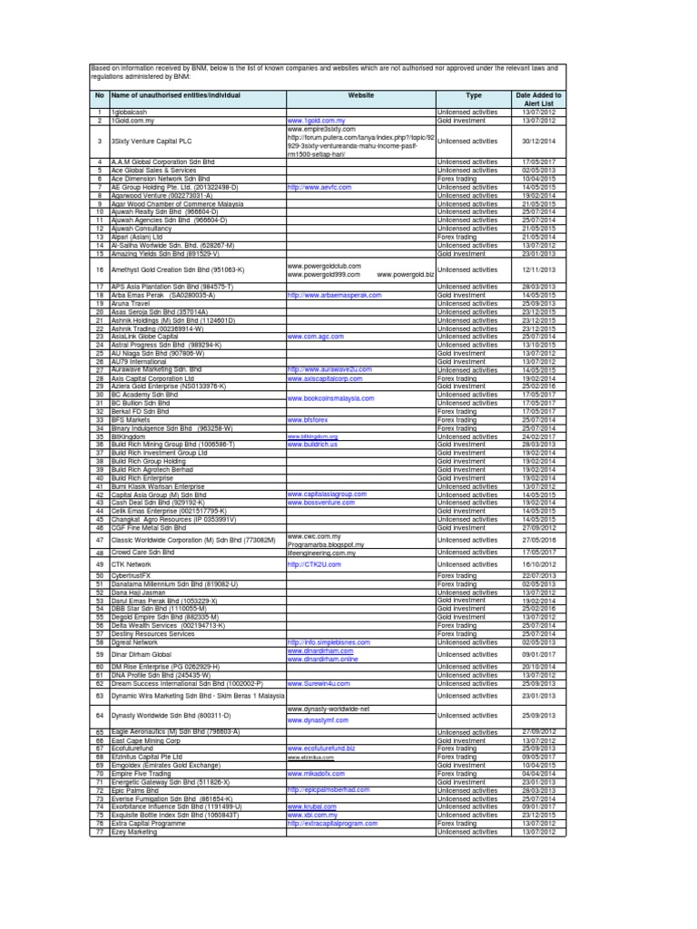 No Name Of Unauthorised Entities Individual Website Date Added To Alert List League Of Nations Unrest