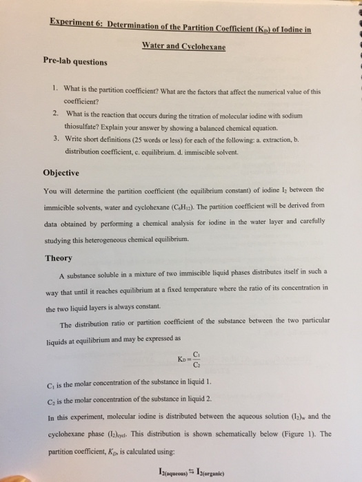 Solved Experiment 6 Determination Of The Partition Coeff Chegg Com