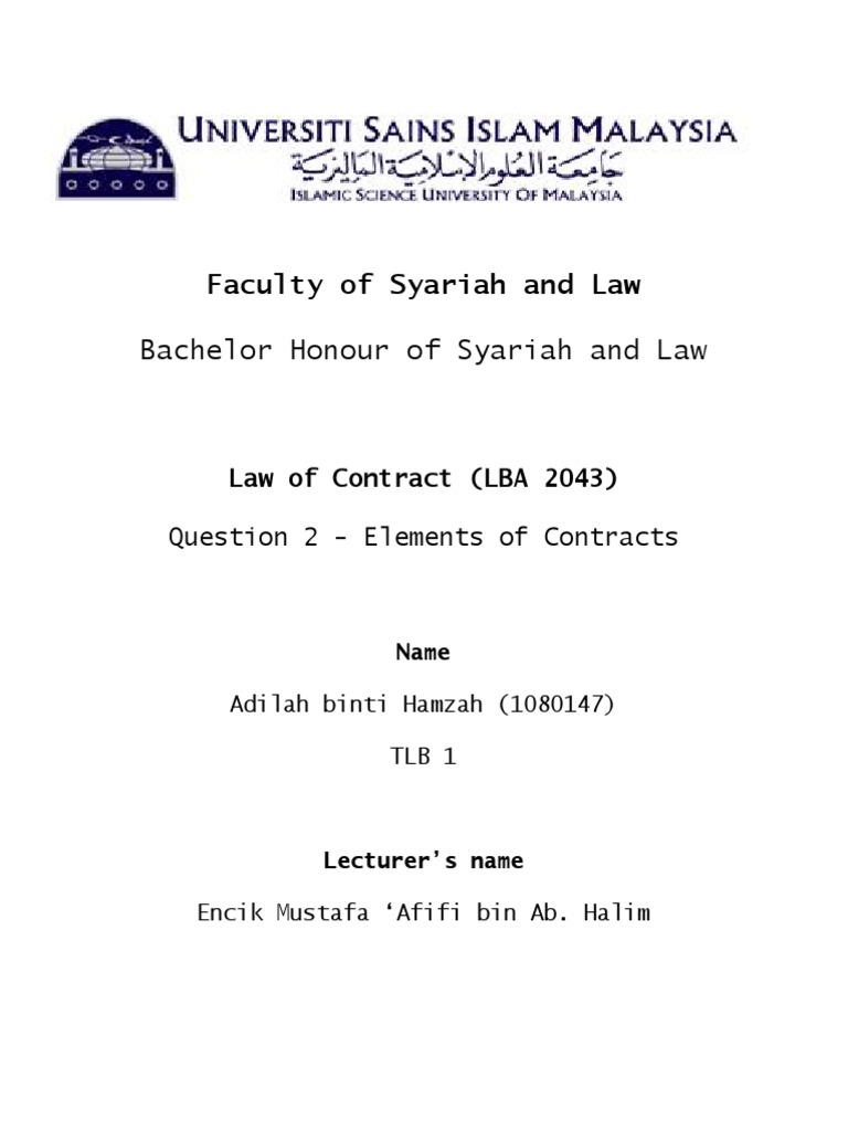 Elements Of The Law Of A Contract In Malaysia Law 431 Studocu