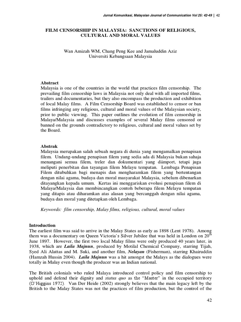 Film Censorship In Malaysia Sanctions Of Religious Cultural And Moral Values 2 Pdf Censorship Malaysia