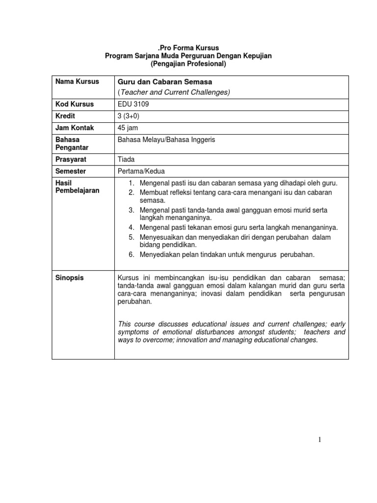 Proforma Edu3109 Guru Dan Cabaran Semasa