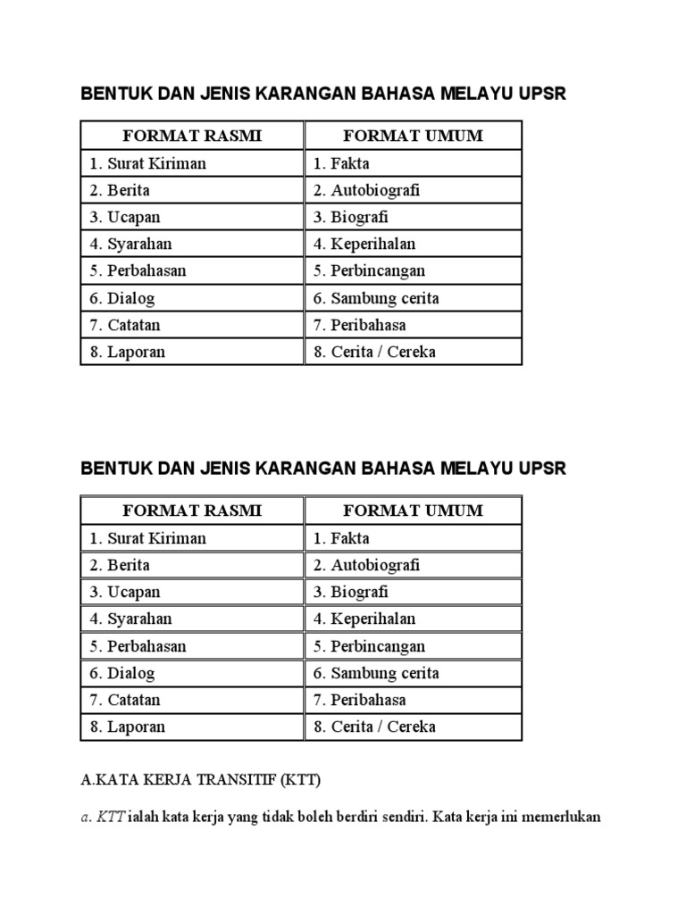 Bentuk Dan Jenis Karangan Bahasa Melayu Upsr