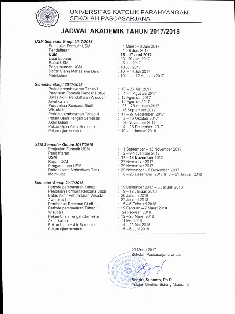 Kalender Akademik Usm 2018 19