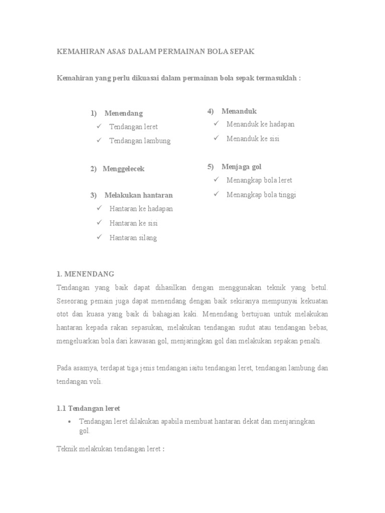 Kemahiran Asas Permainan Bola Sepak Docx Document