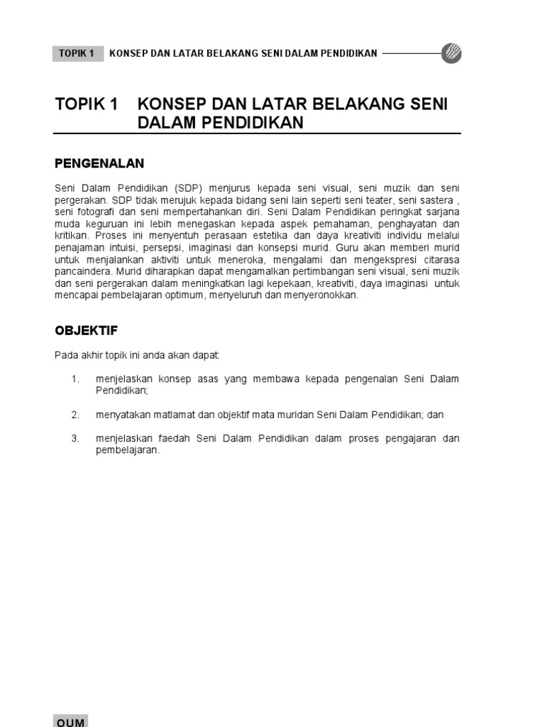 Seni Dalam Pendidikan Oum Note Topik 1 Konsep Dan Latar Belakang Seni Dalam Pendidikan