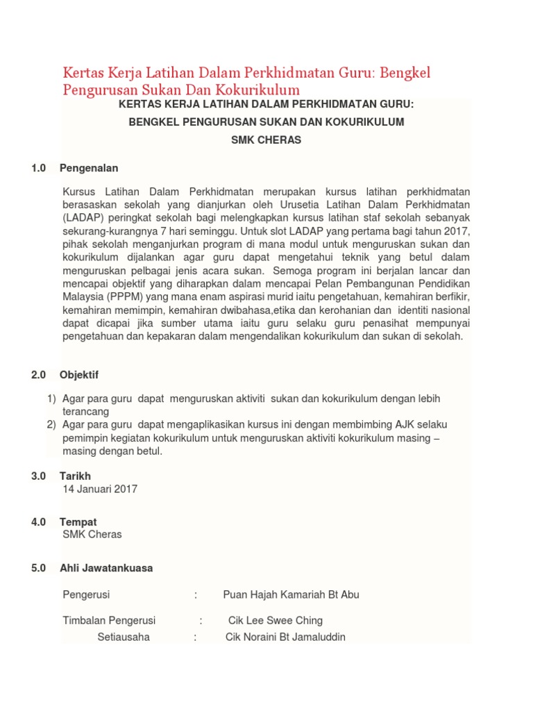 Guru atau setiausaha latihan dalam perkhidmatan ladap pastinya mempunyai tanggungjawab yang berat kerana harus memastikan guru guru lain menepati syarat ladap iaitu dengan mematuhi 42 jam latihan setahun dan sebagainya harap nota yang disediakan oleh miss i mampu membantu guru guru. Seminar kebangsaan majlis dekan dekan pendidikan. Objektif utama program yang bertemakan satukan rasa ini untuk menambahkan kejelekitan antara guru dan staf sekolah. In house training to teachers staff.