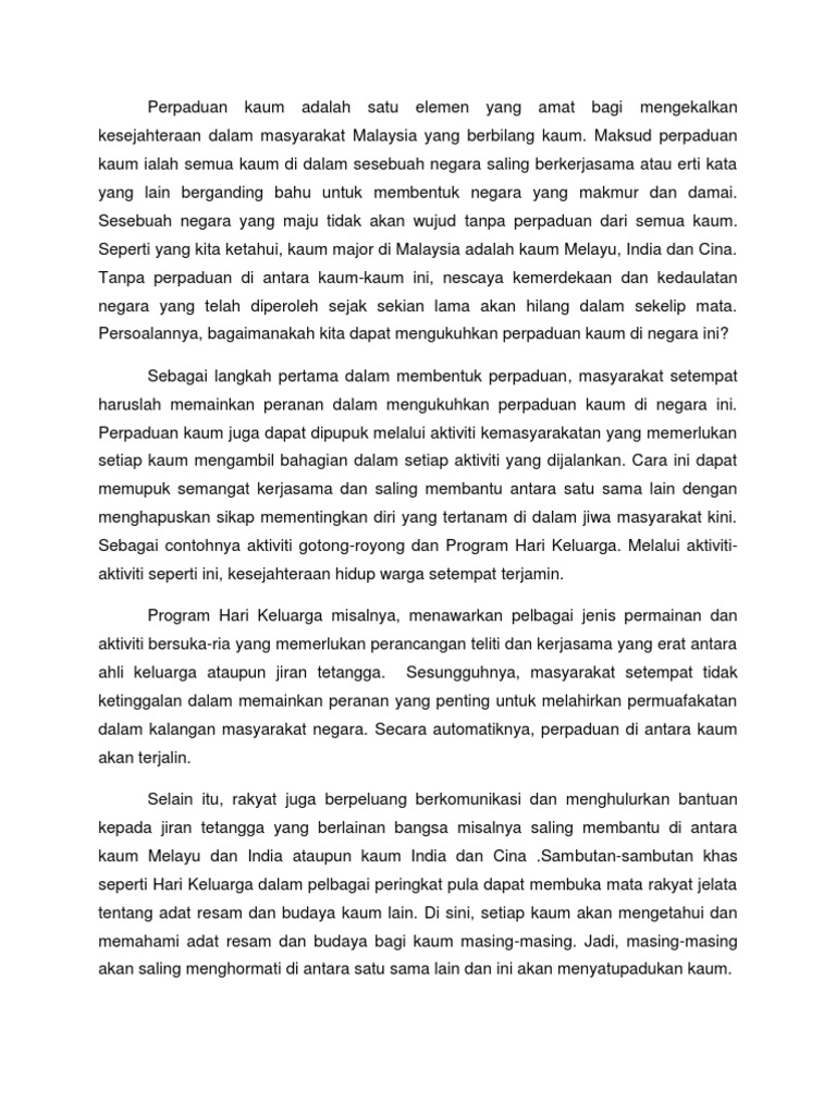Folio Sejarah Tingkatan 2 Perpaduan Kaum