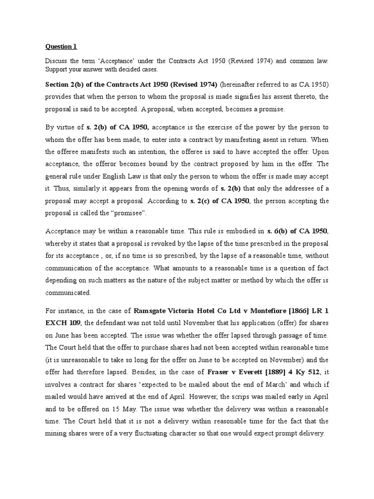 Whether telex constituted complete agreement whether negotiation affected telex offer whether terms of offer must be complied to constitute valid contract monday february 17 2014 issues facts high court court of appeal whether the telex offer was subject to term to be drawn up. Malayan flour mills bhd v saw eng chee administrator of the estate of saw cheng chor deceased anor 1997 1 mlj 763. Malayan flour mills bhd v saw eng chee administrator of the estate of saw cheng chor deceased anor this case applied the principle deduced from the leading case hyde v wrench. In the instant case by proposing to purchase all the four lots the plaintiff s managing director teh liang teik had in fact taken upon himself not only to vary the term but also subject matter of the original offer.