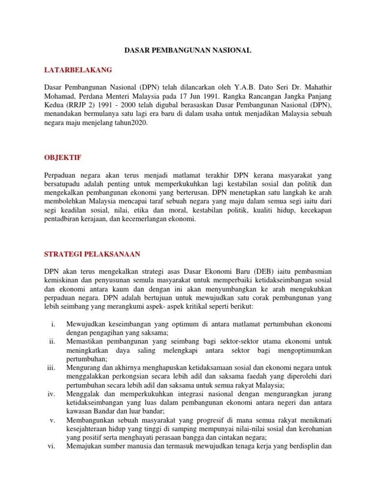 Dasar Pembangunan Nasional Dpn By Shanthini Pranisha