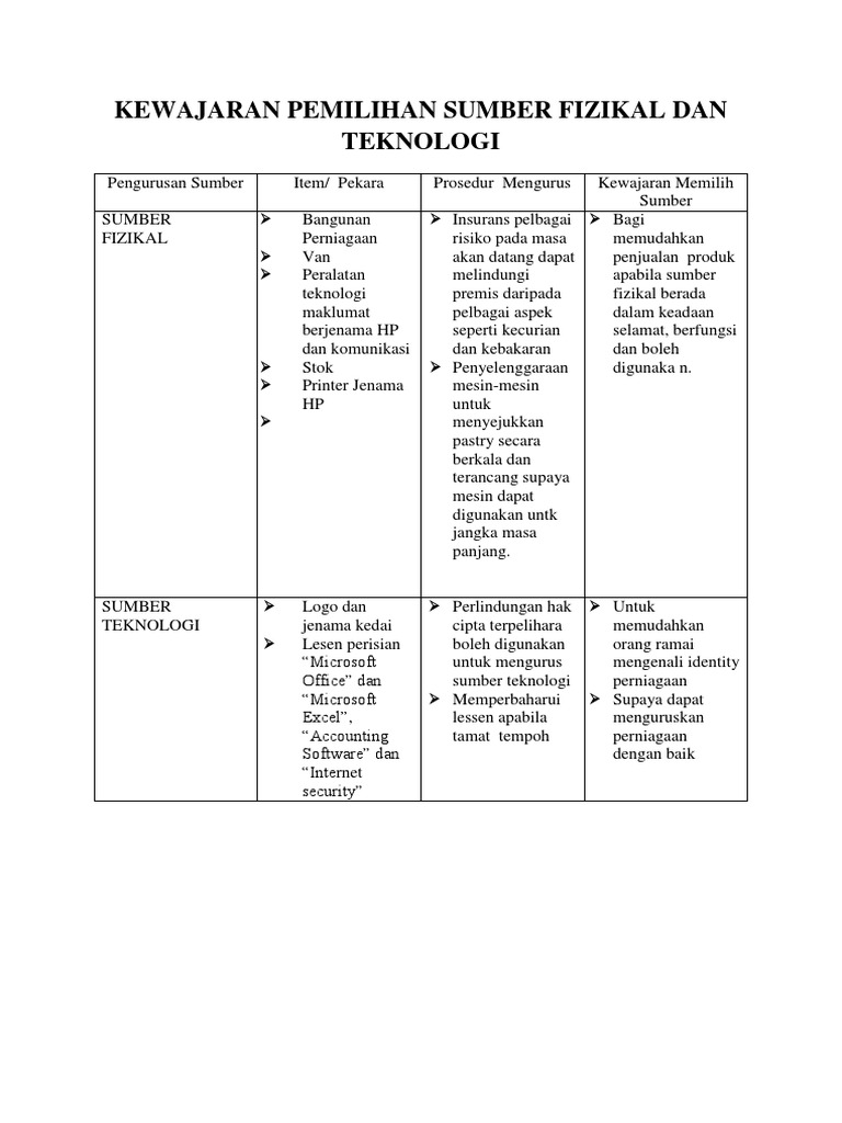 Pengurusan Sumber Fizikal Dan Teknologi Perniagaan