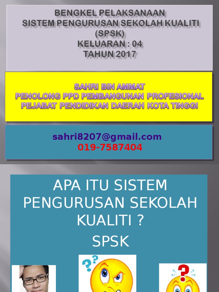 Taklimat Sistem Pengurusan Sekolah Kualiti Spsk Tahun 2012 Ppt Powerpoint